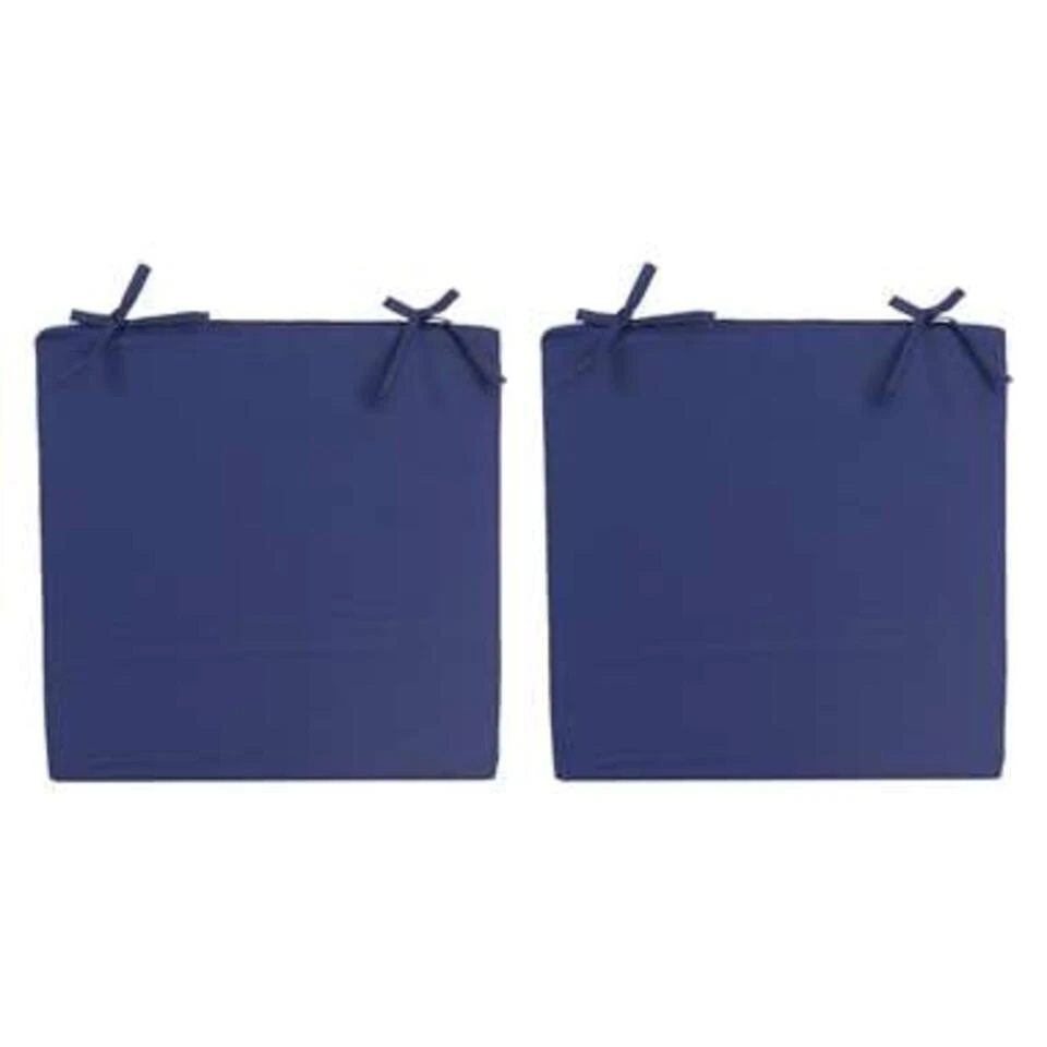 Stoelkussens voor binnen- en buitenstoelen in de kleur donkerblauw 40 x 40 cm. Deze mooie kussens zijn water en UV-bestendig. Materiaal: 100% polyester. Wasbaar: ja, de hoes is wasbaar op 30 graden. Buitenkussens voor bij uw tuinstel/banken. Diverse mooie luxe kleuren voor een topprijs. Tuinkussens voor buitenstoelen.