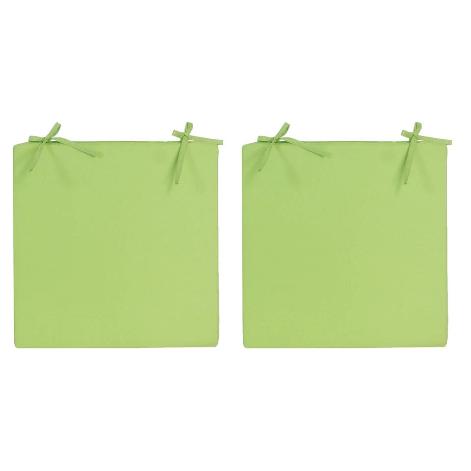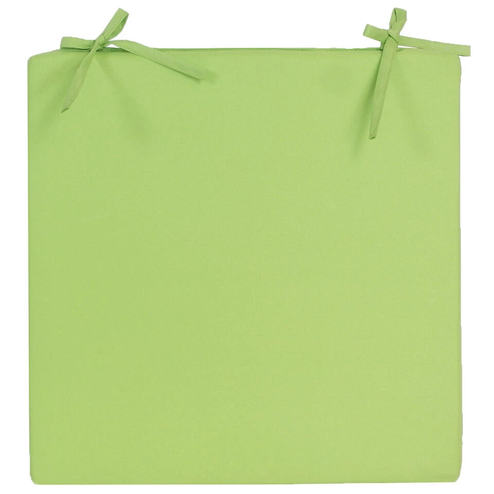 Stoelkussen voor binnen- en/of buitenstoel in de kleur groen 40 x 40 cm. Deze mooie kussen is water en UV-bestendig en heeft twee touwtjes om de kussen vast te maken aan de stoel. Materiaal: 100% polyester. Wasbaar: ja, de hoes is wasbaar op 30 graden. Buitenkussens voor bij uw tuinstel/banken. Diverse mooie luxe kleuren voor een topprijs. Tuinkussens voor buitenstoelen.