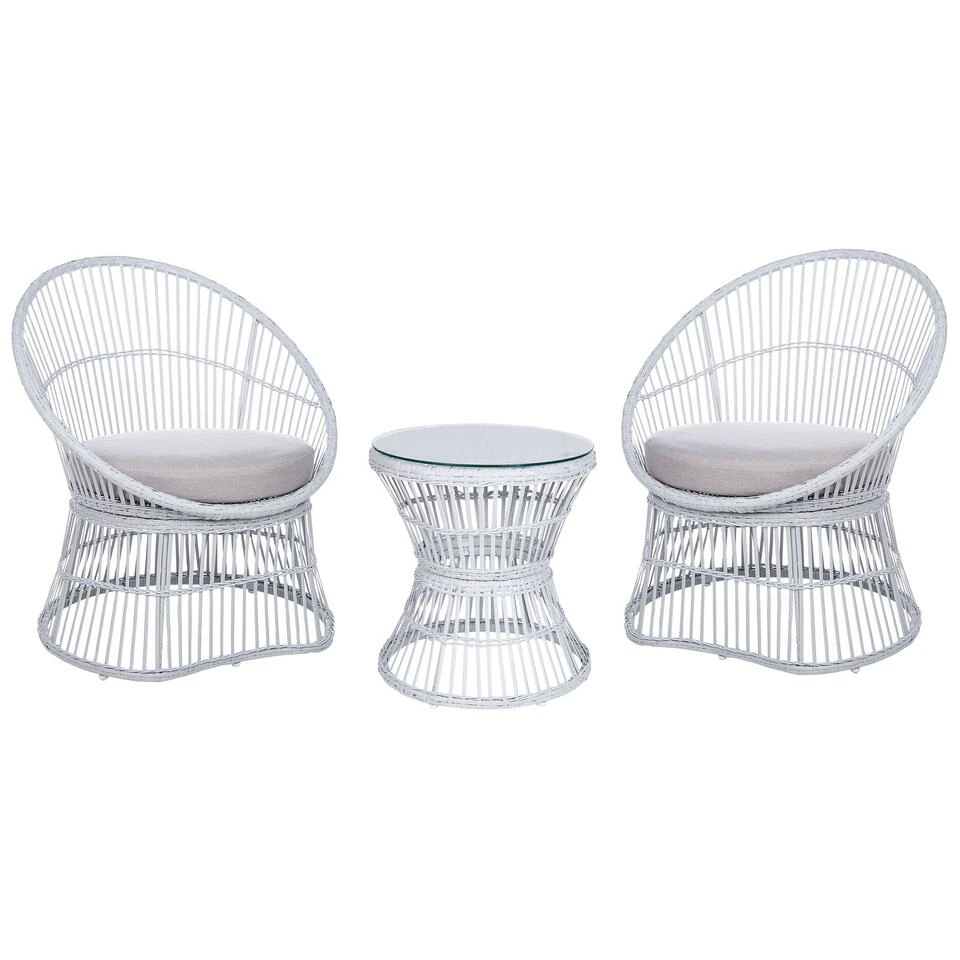 Balkonstoelen met ronde salontafel. Geef je balkon een upgrade met deze charmante tuinmeubelset. Met twee rotan stoelen en een ronde salontafel is de set een perfecte mix van comfort, modern design en natuurlijke esthetiek. De stoelen zijn voorzien van twee zitkussens voor optimaal gebruikscomfort, terwijl de salontafel een rond tafelblad heeft met gehard glas waarop je je kopje koffie of eten kunt zetten. Het is gemaakt van PE-rotan, een sterk materiaal. Het meubel is duurzaam en weerbestendig. Geniet alleen of met een vriend van je tijd op deze moderne balkonset.