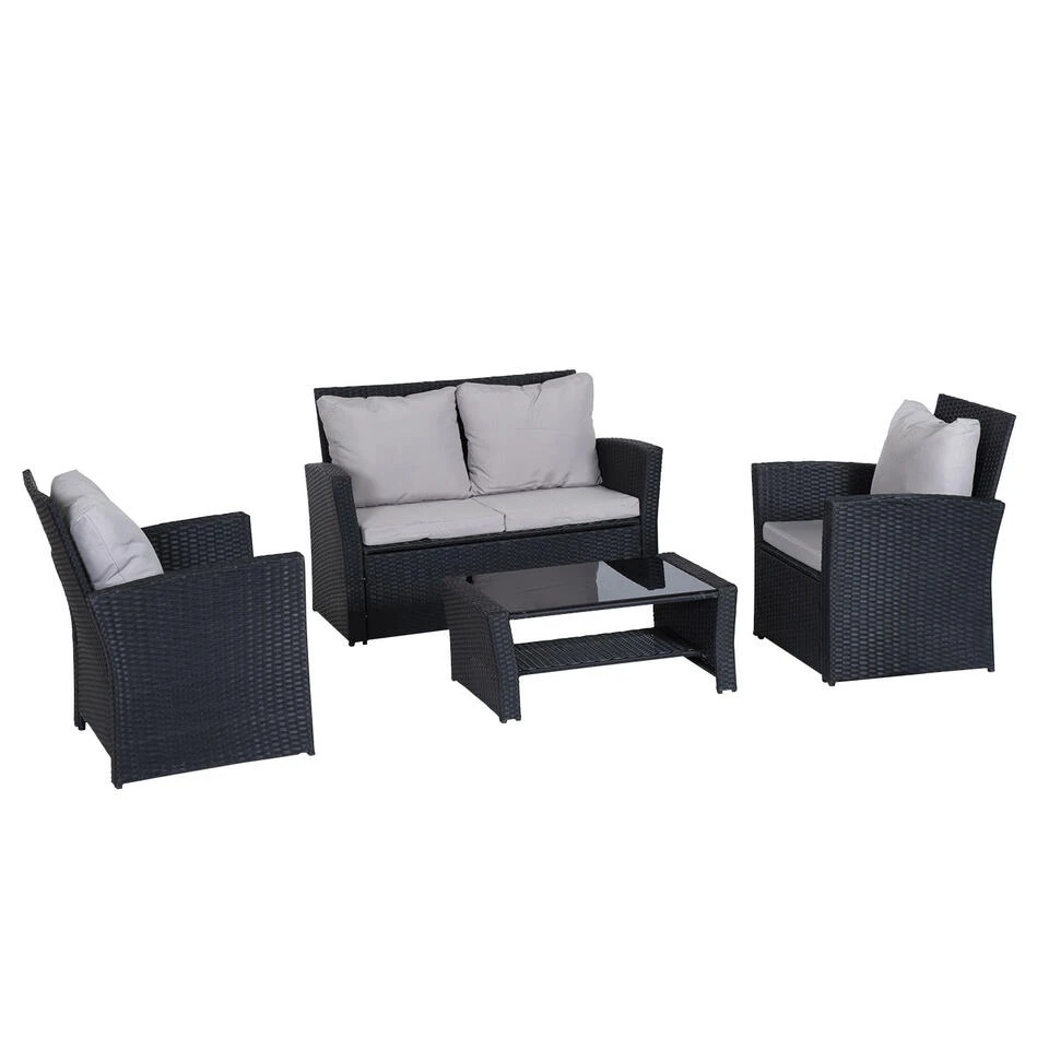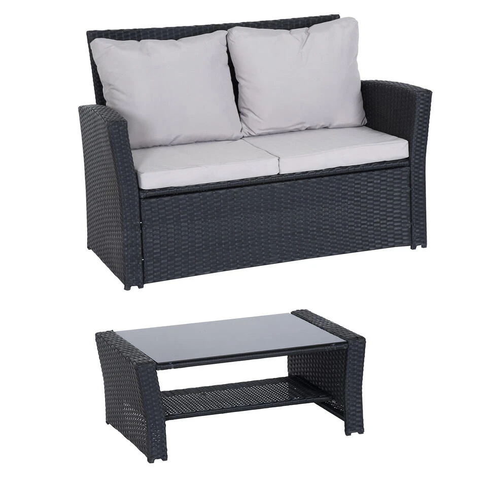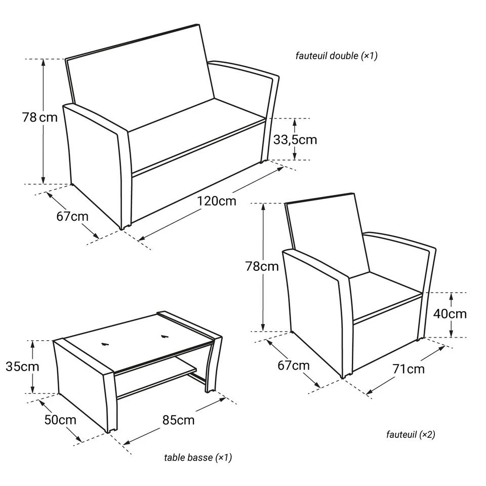 Deze SINTRA tuinmeubelset is zowel stijlvol als comfortabel en zal perfect zijn voor zomerfeesten. U zult uw gasten op uw terras of balkon kunnen ontvangen om van de zonnige dagen te genieten: de 2-zitsbank en de twee enkele fauteuils kunnen rond de salontafel worden geplaatst, afhankelijk van uw ruimte. Dankzij de constructie van geweven hars, een stevig en licht materiaal dat weerbestendig en gemakkelijk te onderhouden is, zult u jarenlang plezier hebben van uw tuinmeubelen. Dit model is verkrijgbaar in verschillende kleuren, afhankelijk van de stijl die u aan uw buitenmeubilair wilt geven.