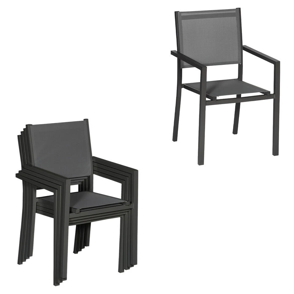 Deze set is een perfecte aanvulling op uw tuinmeubelen om u in de zomer te vermaken. Het bestaat uit een tafel 140/200, met een verlengstuk met stapelbladen, en 10 stapelstoelen als u meer ruimte nodig hebt in uw buitenruimte. Praktisch, esthetisch, functioneel, dit VENEZIA model heeft het allemaal. De tuinmeubelen zijn gemaakt van aluminium, een licht en robuust materiaal, en de bekleding van de zitting is gemaakt van textilene, wat een optimaal comfort garandeert. Onze tuinmeubelen zijn zeer water- en UV-bestendig en dus duurzaam, zodat u ze vele jaren als nieuw kunt houden.
