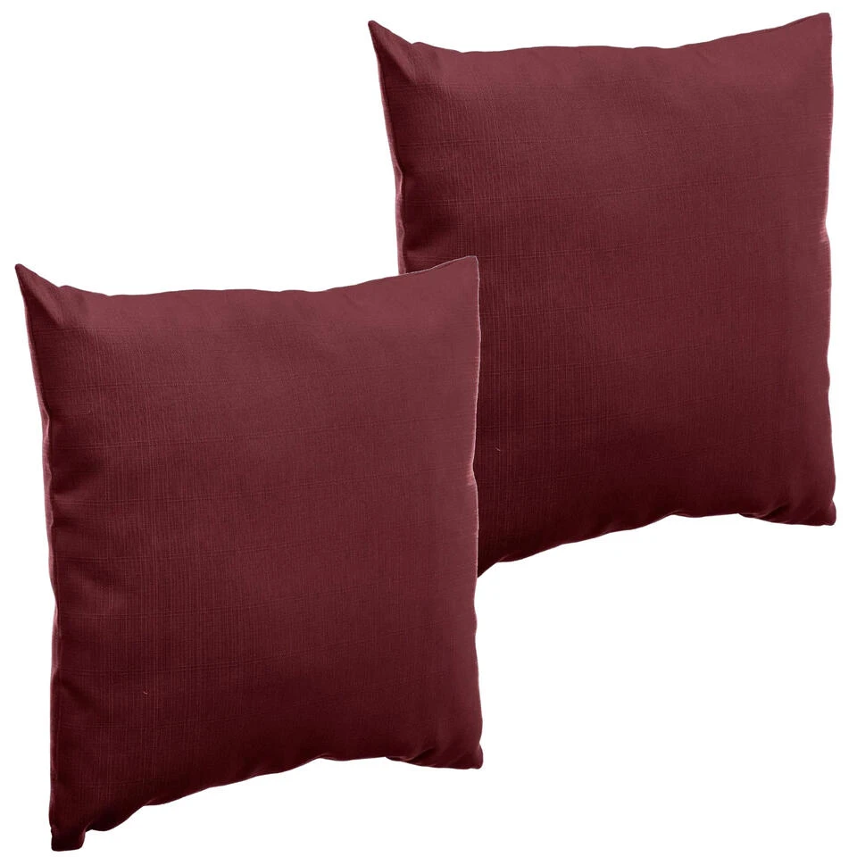 Bank/sier/tuin kussens voor binnen en buiten/tuin bank in de kleur bordeaux rood 40 x 40 x 10 cm. Deze mooie kussens zijn water en UV-bestendig. Materiaal: 100% polyester. Wasbaar: ja, de hoes is wasbaar op 30 graden. Buitenkussens voor bij uw tuinstel. Diverse mooie luxe kleuren voor een topprijs. Kussen voor tuinbank.