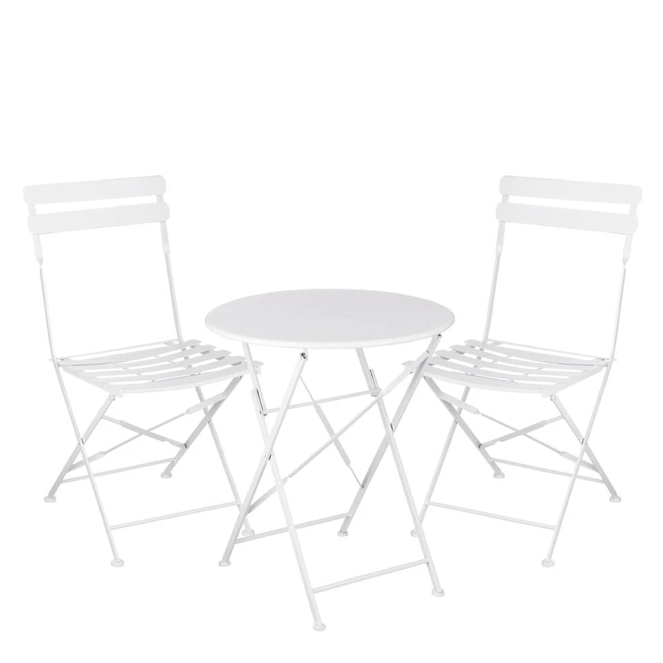 Met de Laurence bistroset van Mica Decorations creëer je in een mum van tijd een gezellig en comfortabel zitje. De set is gemaakt van metaal en heeft een witte kleur. Door het design is hij met van alles te combineren en weet hij in elke tuin of terras wel een plekje te vinden. De stoelen en de tafel zijn inklapbaar, ideaal met opbergen! De stoelen hebben een afmeting van L41 x B49,5 x H84 cm en de ronde tafel een afmeting van H71 x Ø61cm. Ideaal om te genieten van een maaltijd of een drankje!