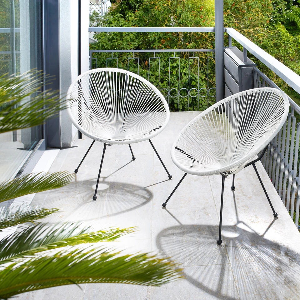 Op de uitnodigende retrostoelen van tectake in ovale Acapulco-stijl versmelten gezellig zitten en ontspannen liggen. De fijne, elastische kunststofstrengen passen zich aan de vorm van elk lichaam aan. Met haar eenvoudige elegantie slaat de golvende, filigrane constructie zowel in open lucht als binnen de eigen vier muren een goed figuur. Het frame van gepoedercoat staal en het zitvlak van duurzaam polyethyleen geven de lichte stoelen van tectake grote stabiliteit en hoog comfort.