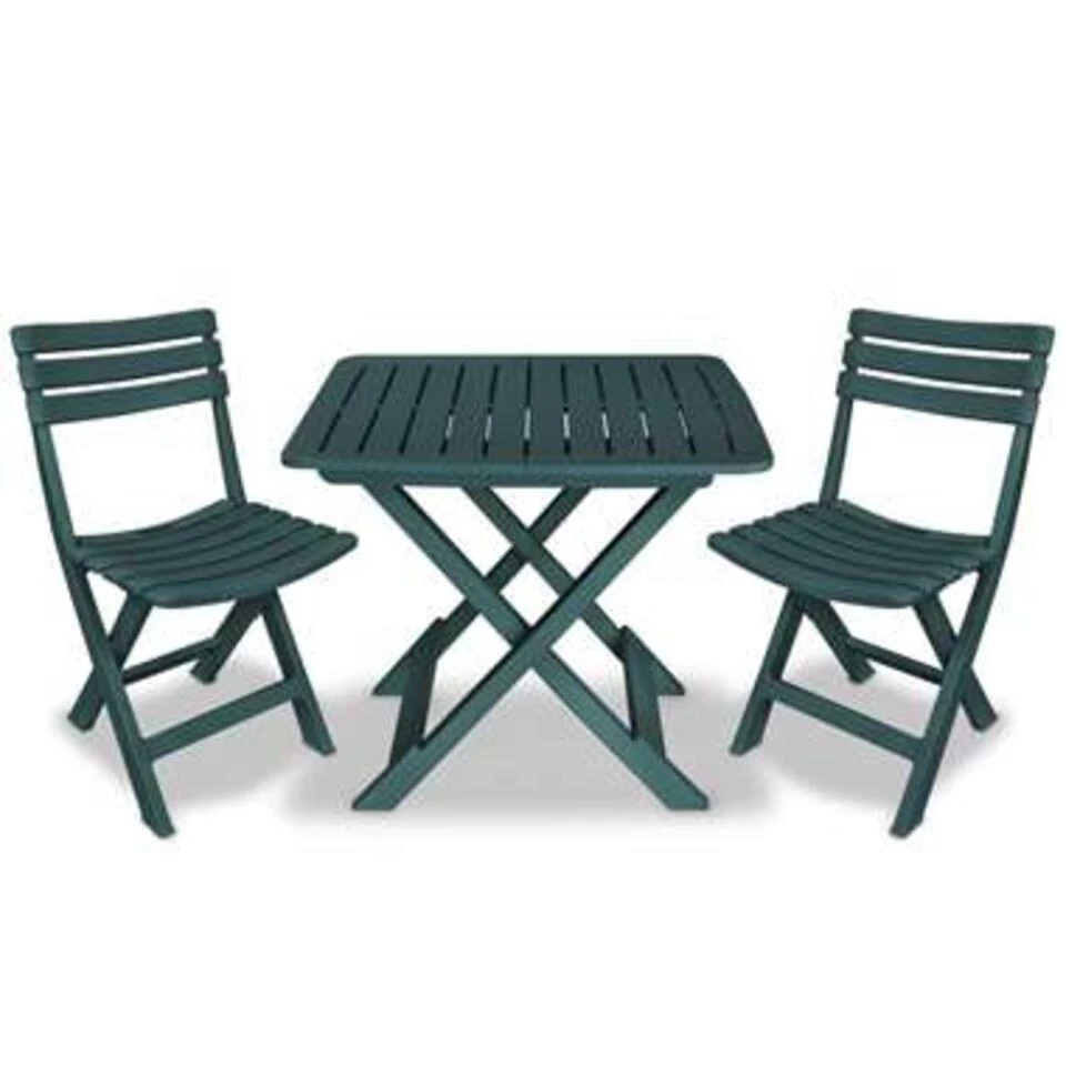 Deze tuinmeubelset is gemaakt van duurzaam kunststof, dit maakt hem weerbestendig en makkelijk schoon te maken. De tafel en de stoelen kunnen worden opgeklapt om ruimte te besparen als ze niet worden gebruikt.