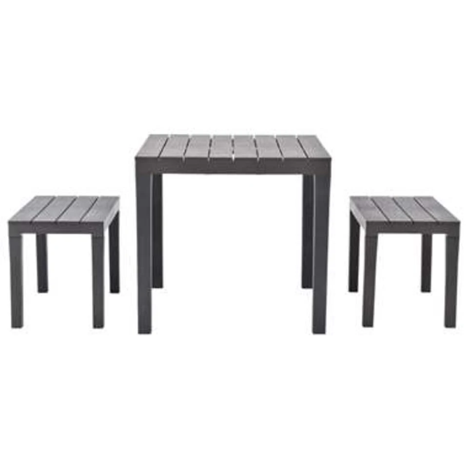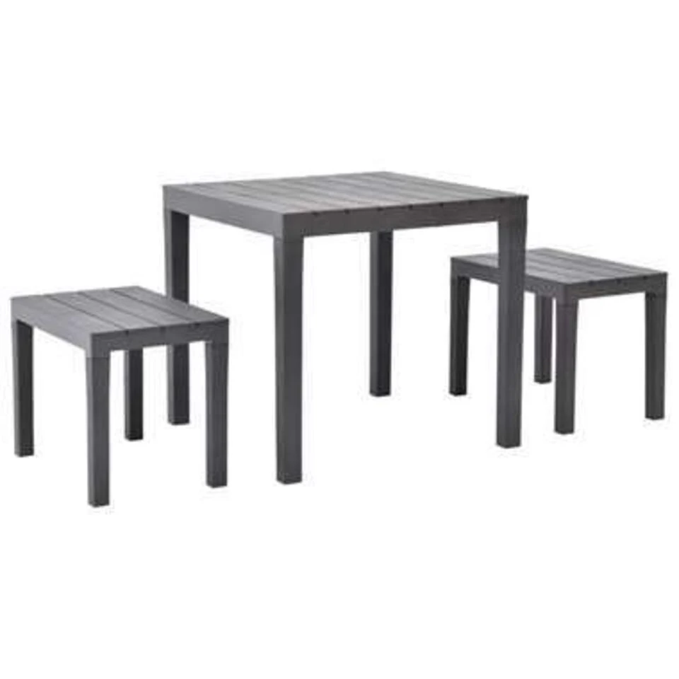 De levering bevat 1 tafel en 2 bijpassende banken.